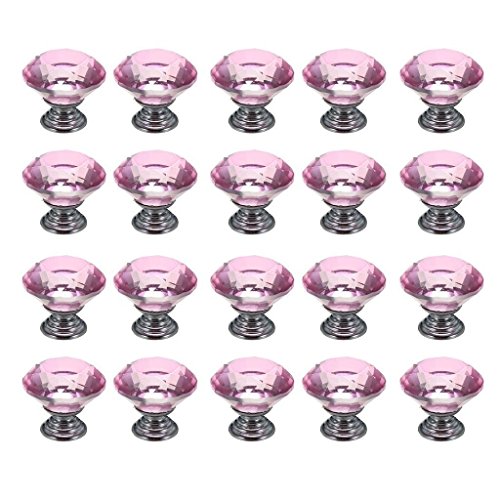 Generic 30mm Crystal Glass Diamond Shape Cabinet Knob Drawer Pull Handle Kitchen Colour Pink(Pack of 20)