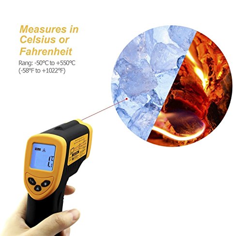- Target quicker: a built in laser gives you the precision to hone in on the Exact space you want to measure. Don't blindly guess where you're pointing your infrared thermometer