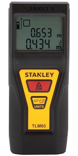 Stanley TLM65.Features: Simple two-button design for intuitive point and click measuring.Accuracy within 0.3cm .for consistent and reliable measurements.Measures distances, calculates area, and volume to make job estimates quick and easy.Instantly calculates square footage of a room or space.Continuous measurement to help find target distance quickly and easily.Put away measuring tapes and make measuring jobs a breeze with this Stanley 65 ft.Laser Distance Metre.Ideal for professionals or hobbyists, the distance measurer can detect measurements within 0.3cm .of accuracy.It's large readout screen and intuitive design makes it perfect for any measuring job.FeaturesSimple two-button design for intuitive point and click measuringAccuracy within 0.3cm .for consistent and reliable measurementsMeasures distances, calculates area, and volume to make job estimates quick and easyInstantly calculates square footage of a room or spaceContinuous measurement to help find target distance quickly and easilyIncludes65 ft.Laser Distance Measurer - STHT77032SpecificationsCordless: YesWidth: 0.2 job.Feaght: 4.2 job.Feath: 1.2 job.Feaght: 0.2 job.Featery Type: AAA AlkalineLaser Class: 2Laser Type: 635 nm, Do you have questions about this product.Ask a question.