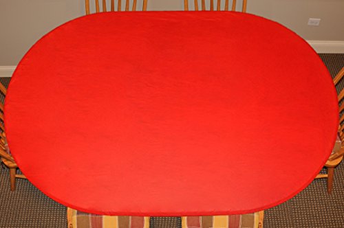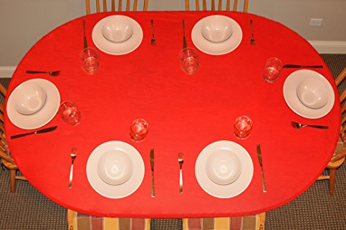 (Oblong/Oval) - Elastic Edged Flannel Backed Vinyl Fitted Table Cover - SOLID RED Pattern - Oblong/Oval - Fits tables up to 120cm x 68"