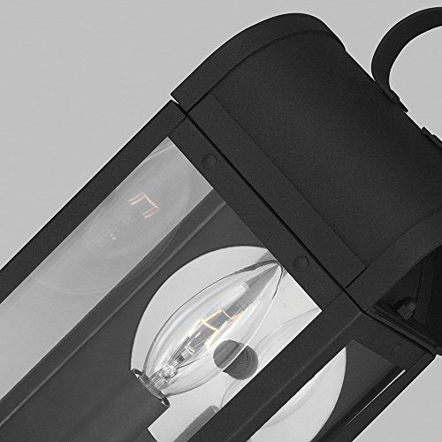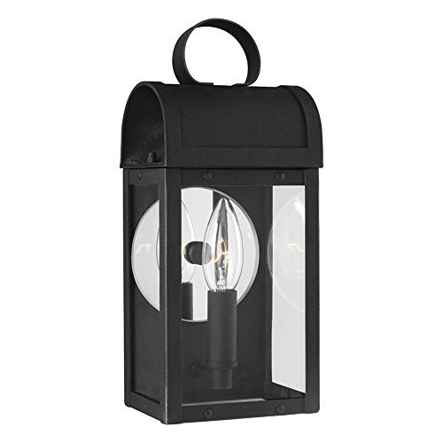 The Sea Gull Lighting Conroe one light outdoor wall fixture in weathered copper enhances the beauty of your property, makes your home safer and more secure, and increases the number of pleasurable hours you spend outdoors. Inspired by traditional Colonial lanterns, the design of the Conroe outdoor lighting collection by Sea Gull Lighting is created using bent aluminum at the roof and a reflective mirror detail to enhance the incandescent light gleaming through Clear glass, while the integrated LED version is finished with Clear Seeded glass. The overall construction is hand-riveted for an authentic touch. Offered are small one-light, medium two-light and large three-light outdoor wall lanterns in either Black or Weathered Copper finishes. Incandescent candelabra base or integrated LED lamping are available. The advanced, integrated LED option has warm-on-dim technology that warms in color when dimmed, going from 2700K to 2200K and is California Title 24 compliant.