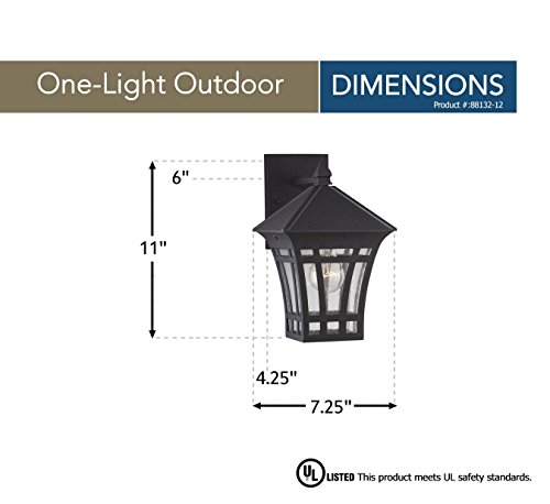 - DIMENSIONS OF OUTDOOR WALL LANTERN: (width x height) 7 1/4 x 11 3/4 inches; extends 9 1/2 inches; backplate dimensions (depth x width x height) 13/16 x 4 1/4 x 6 5/16 inches CLEAR SEEDED GLASS PANEL FOR OPTIMAL ILLUMINATION: this wall mounted outdoor lantern sports clear seeded glass shade that protect the bulb and let light shine through clearly for brilliant illumination