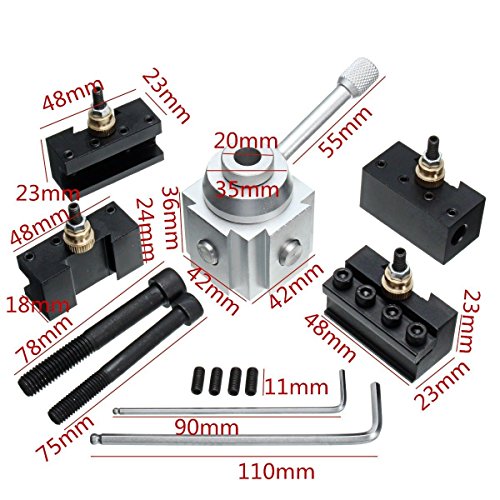 - Specification: Material: Aluminum alloy Compatible for Lathe Features: Each changing tools only takes a few seconds. Using the dial, each tool holder can be rotated multiple angle of 9 ° or 9 °, operations with extension units, can be processed various angles workpiece. Toolholder for the adjusting screw nut and tool, adjust installation height , easy to operate, shortening the time loaded knife.
