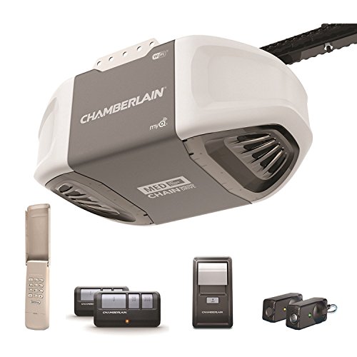 The Chamberlain C450 is a durable, long-lasting chain drive garage door opener with smart technology that gives you more control and makes managing your home and life easier. Powered by Chamberlain’s Lift Power System, it delivers the highest lifting capacity compared to the ½ power class. Built-in Wi-Fi allows you to control your garage door with the Chamberlain MyQ App. From a smartphone or tablet you can get real-time alerts, open, close, and know the status of your garage door and more—from anywhere. Designed and engineered for safety and security, it includes a dual-function wall control panel, a wireless keypad, and features enhanced TriBand technology for superior range, performance, and less interference. The highest level of encryption and monitoring, paired with your home’s ISP and Wi-Fi router firewalls, guard against hacking. Accepts two 100-watt max non-halogen or 26-watt max CFL light bulbs (not included). Designed specifically for 7 ft. garage doors - extension kits required for 8 ft. and 10 ft. doors. Smart garage door opener comes with built-in myq technology to keep you connected and protected: open, close, and know the status of your garage door from anywhere with a smartphone with the myq app Powered by Chamberlain’s MED Lift Power System, the C450 delivers the highest lifting force equivalent capacity compared to the 1/2 power class for effortless lifting and reliable performance Durable chain drive - rugged steel construction with precision fabrication for dependable performance, use after use Superior Range - Includes 2 3-button remote controls that let you control up to 3 openers. Exclusive Triband technology boosts remote range up to 1,500 feet for a quicker entrance and exit Trusted Safety & Security - Unmatched Security+2.0 100 Billion code encryption protects against hacking, and Posi-lock anti-theft protection assures that once the door closes, it stays locked