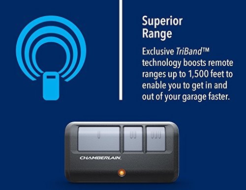 - Superior Range - Includes 2 3-button remote controls that let you control up to 3 openers. Exclusive Triband technology boosts remote range up to 1,500 feet for a quicker entrance and exit Trusted Safety & Security - Unmatched Security+2.0 100 Billion code encryption protects against hacking, and Posi-lock anti-theft protection assures that once the door closes, it stays locked