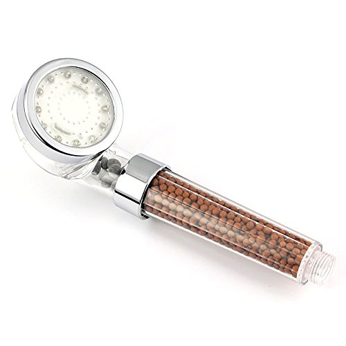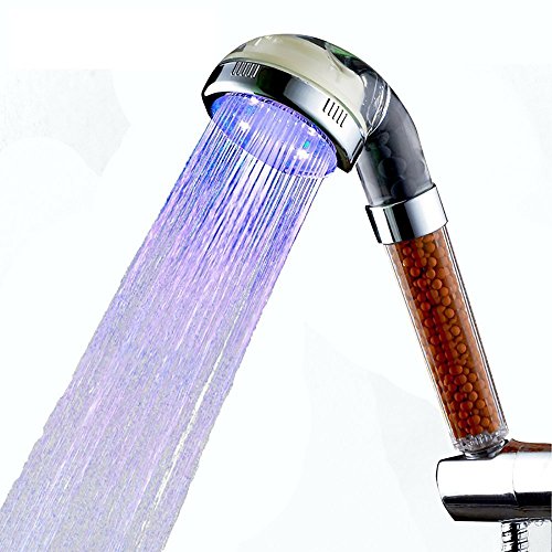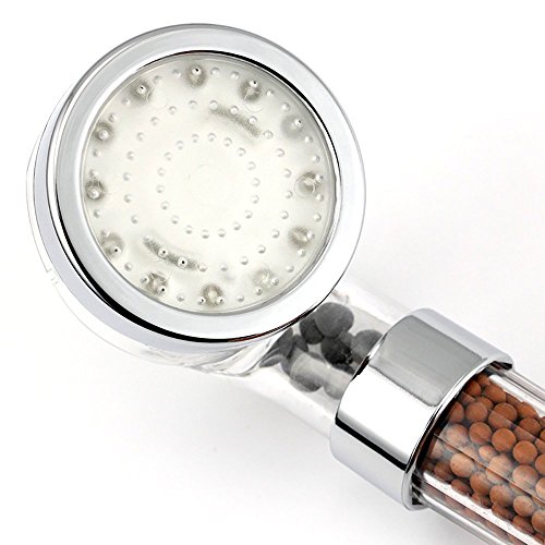 VEHHE Round Rainfall Hand Held Fixed Shower Head High Pressure & Saving Water Negative Lons Shower Sprinkler Head for Relation and Spa When temperature is between 31 and 33 degree,color will be flashing in green and blue, when temperature is between 39 and 43 degree, color will be flashing in blue and red in every second., which is the definition region of temperature, and it is normal, after temperature is stable, it will light in one color stablely.Connection Standard: G1/2 Features:LED light Material:A Grade ABS Shape:Round Finish:Chrome Port:20mm Standard 1/2 inch connection (compatible with all standard shower hoses with size) LED Power Source:Waterflow(not need battery) Simple installation - Very quiet turbine drive 1° C - 31 ° C: The effervescent glow Green 32 ° C - 43 ° C: The effervescent light Blue 44 ° C - 50 ° C: The effervescent light Red Note: When the water temperature exceeds 51 ℃, be careful to avoid being burned oh, the red flashes to remind.