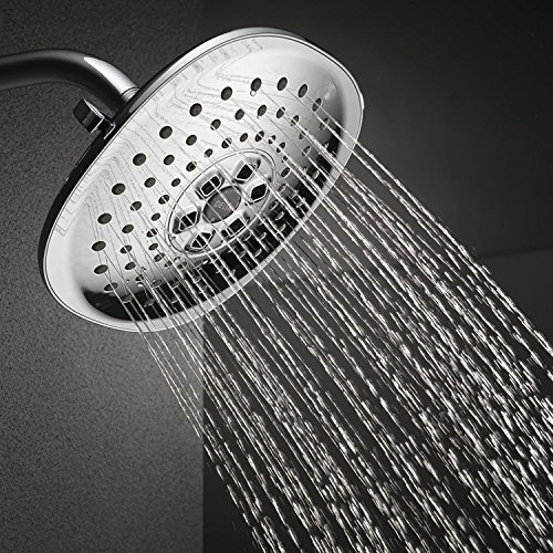 Five-setting H2Okinetic showerhead with self-cleaning and Touch Clean spray holes. Spray settings include pause, full body spray, full spray w/massage, H2Okinetic Spray and massage spray.