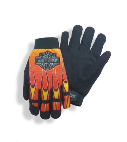 Orange And Yellow Flames Make This Mechanics Glove Really Hot! General Maintenance Work Glove Keeps Hands Clean And Safe From Incidental Abrasion. Reflective Harley Davidson Bar And Shield Logo Patch.warning: Not Intended For Use When Riding A Motorcycle. Improper Use Of This Product May Result In Serious Personal Injury. Size Xl Uom Pr