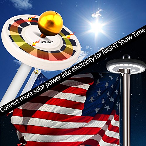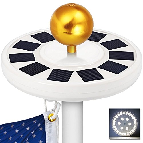 - Display Your Pride in all its dazzling glory for years to come with the brightest, long-lasting and easy-to-use solar flagpole light! Apply to most standard 15 - 25 ft flag poles with a 1/2"-thick rod at top. Brighter Flag Pole Light Honor the Old Glory: An upgraded model with 30 brighter energy efficient LED bulbs VS. 20 LED or 26 LED provides better brightness to your flag.