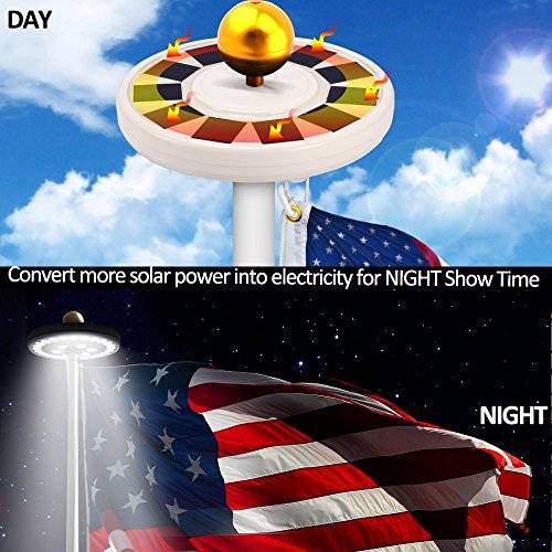 - Fitting for most of flagpoles(Through hole for 0.55in)- Thanks to independent solar charging system, there is No hassling with wires and electrical connections. Easy to install, no special tools required.