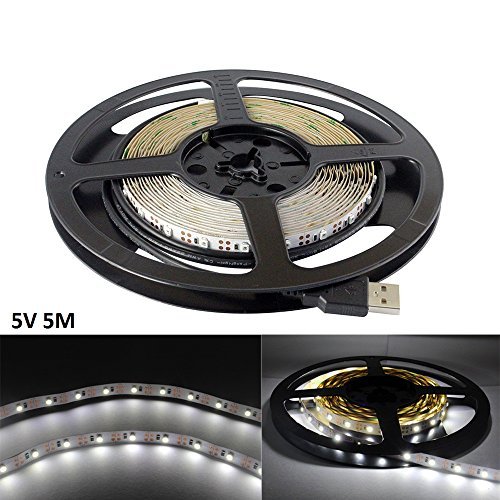 (5M,3528,Non-waterproof, Cool White 6000-6500K) - Generic USB LED Strip Light 5V 5M 300 SMD 3528 with 3M Tape for TV PC Computer Back Lighting (Non-waterproof, Cool White 6000-6500K,Pack of 5M)