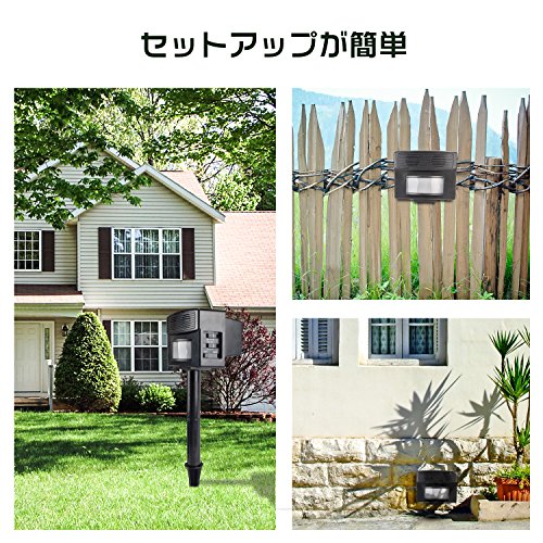 - 【機能と効果】:超音波、フラッシュライトで野生動物を追い払う!動物が嫌がる超音波を発生しお庭の糞尿などの被害を軽減、生活がより快適! 動物を怪我させず、人間や植物に無害、環境に優しいです。