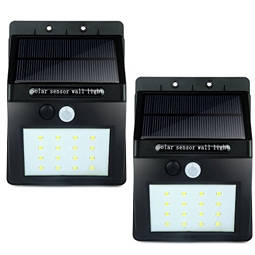 UniqueFire ソーラーライト センサーライト, 16 LED 高輝度 ワイヤレス 人感センサー搭載 アウトドアライト 太陽発電 省エネ 広角 玄関入口 屋外 屋内 軒先 ガーデン 駐車場などに適用 ソーラー壁掛けライト 防犯ライト 防水等級IP64 防雨(2点セット)