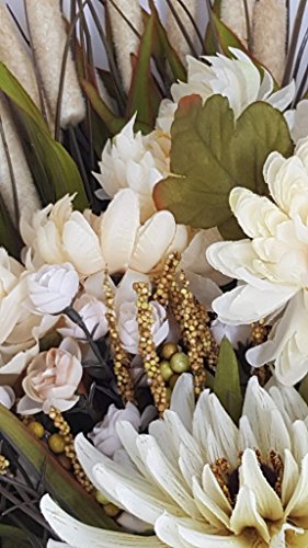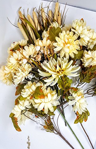 /4つアイボリー7 Mum Blossom植物+ 1アイボリーCattails Bush + 2 Gerber Daisies + berryflowerスプレー+ A Couple Free Ones。希望小売価格55.00 +