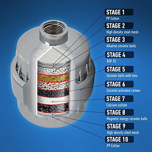 - 10-stageろ過システム。このPurifyingカートリッジの人生で爽かなシャワーのための経験の水を徹底的に削除してフィルタ10段階で構成されます。有効塩素、重金属、バクテリアを除去し、がこれはシャワーその革新的なろ過システムするたびに安心のオーガニック素材を使用しており、堆積岩および他の不純物から水が溜まっていました。