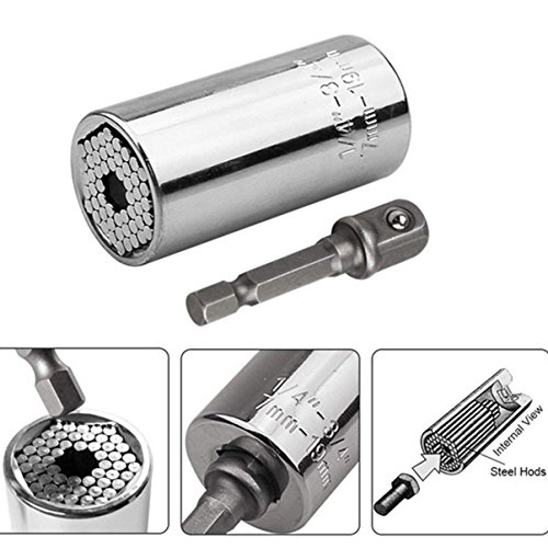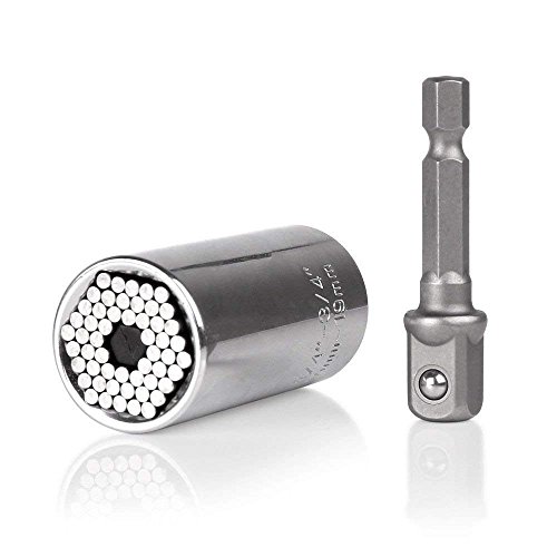 万能VΛ ソケット ユニバーサル ソケットレンチ (7~19mm,1/4~3/4インチ) 2点セット 対応 グリッパー & ドリルアダプター