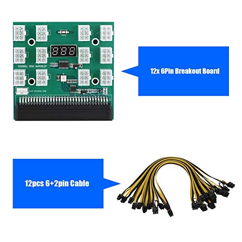 VBESTLIFE PCI-E 6ピン マイニング用 電源ブレークアウトボード+12x2pinケーブル LEDスクリーン付 1600W ブレークアウトボード