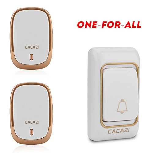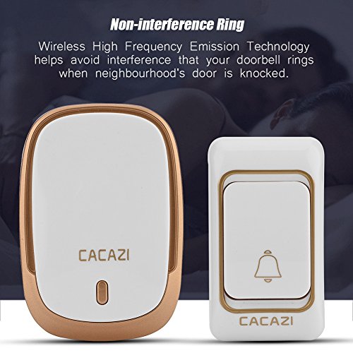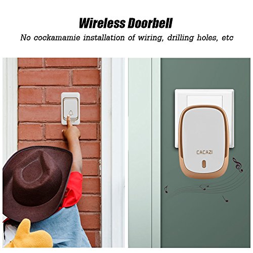 CACAZI K01 浸透ワイヤレスドアベル 防水 非干渉 ワイヤレスチャイムドアベル、328yd遠隔制御距離 音量を調整可能、ドアベル(USプラグ ゴールド)