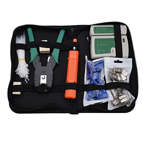 lanケーブル自作工具キット VBESTLIFE 圧着ペンチ+ストリッパー+パンチダウンツール+RJ45プラグ 収納ケース付き