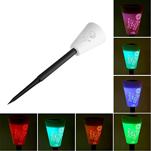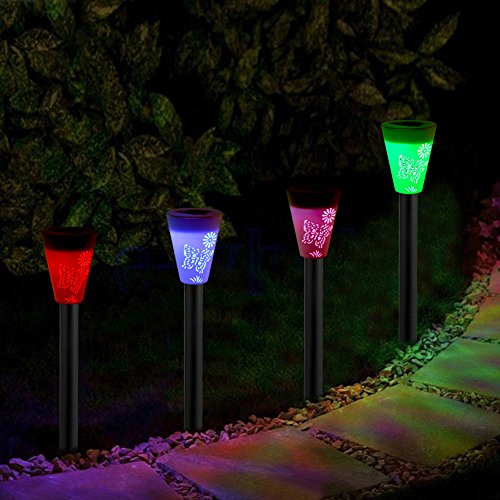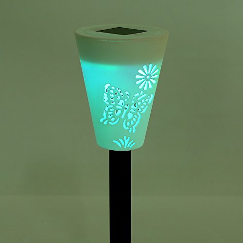 - 蝶のパターンの詳細とソーラーガーデンライト。経路と庭の特徴をマーキングするのに最適です。