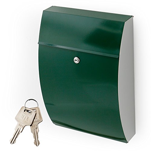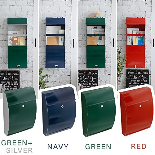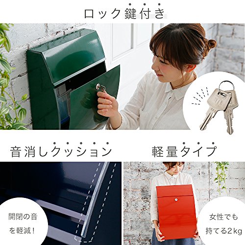 LOWYA (ロウヤ) ポスト 郵便ポスト 郵便受け 鍵付き A4サイズも入る大容量 壁掛け 壁付け スチール グリーン×シルバー