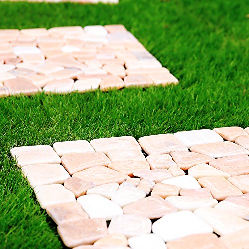 LOWYA (ロウヤ) 石畳マット 天然石 タイル 簡単カット ガーデンタイル 正方形 30.5x30.5cm 10枚セット ピンク