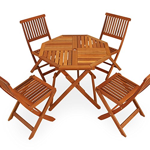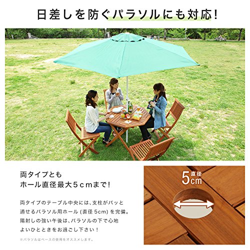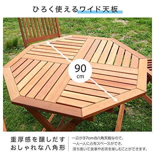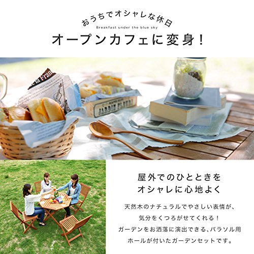 LOWYA (ロウヤ) ガーデン ガーデンテーブルセット 木製 天然木 5点セット 折り畳み パラソル穴付 4人掛け 八角形テーブル