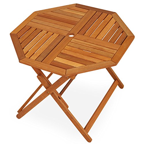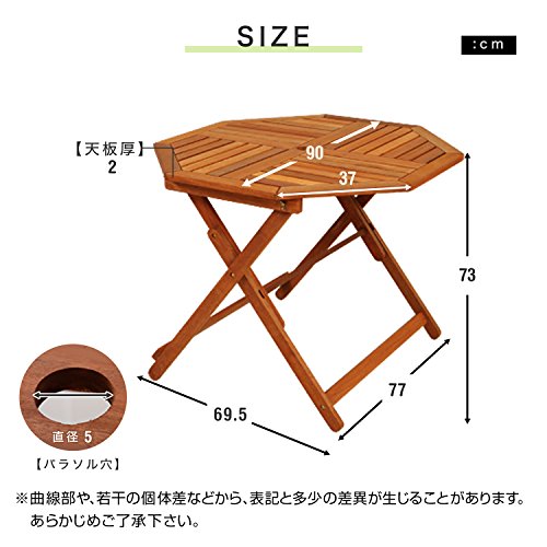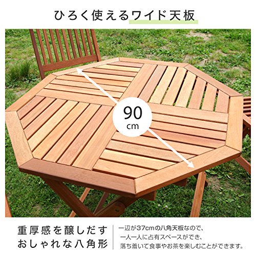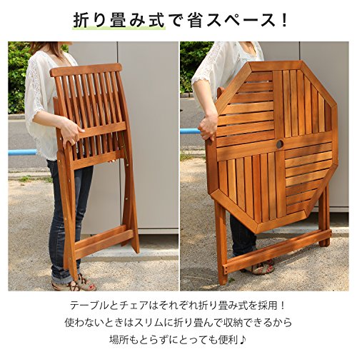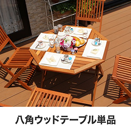 LOWYA (ロウヤ) ガーデン ガーデンテーブル 木製 天然木 テーブル 単品 折り畳み パラソル穴付 4人掛け 八角形テーブル