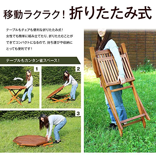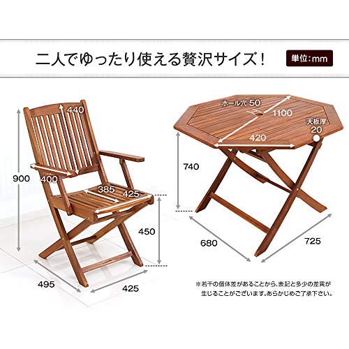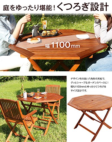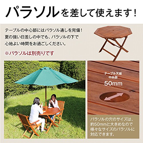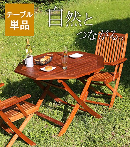 ガーデン ガーデンテーブル 天然木 アカシア材 木製 テーブル 単品 折り畳み パラソル穴付 2人掛け 八角形
