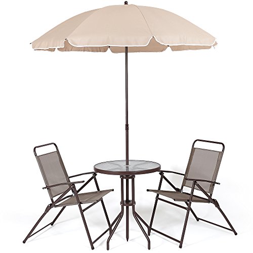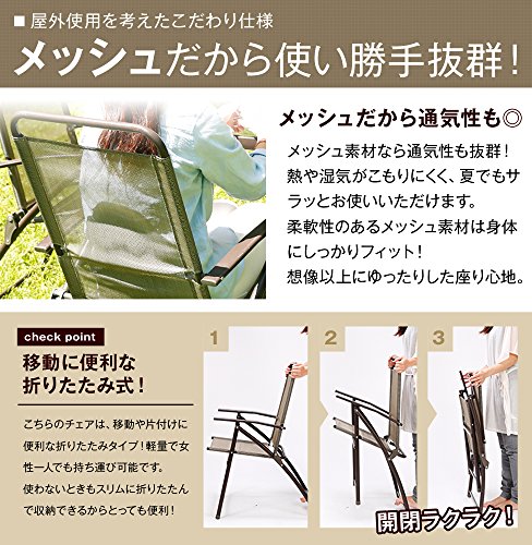 LOWYA (ロウヤ) パラソル付き ガーデンテーブル 4点セット ガラステーブル 折り畳み メッシュチェア 2人掛け