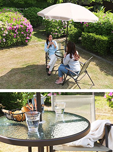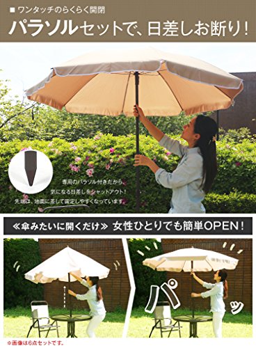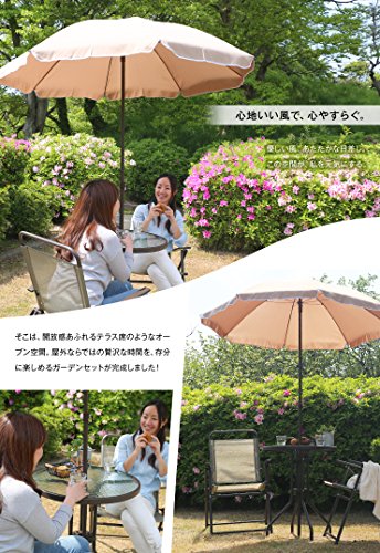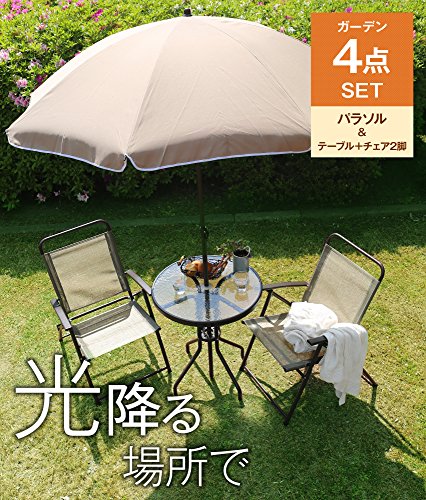 【商品番号:ff03-fj025-0010z0】 このセットひとつでお庭がカフェ空間に!パラソル付きガーデン4点セットです。