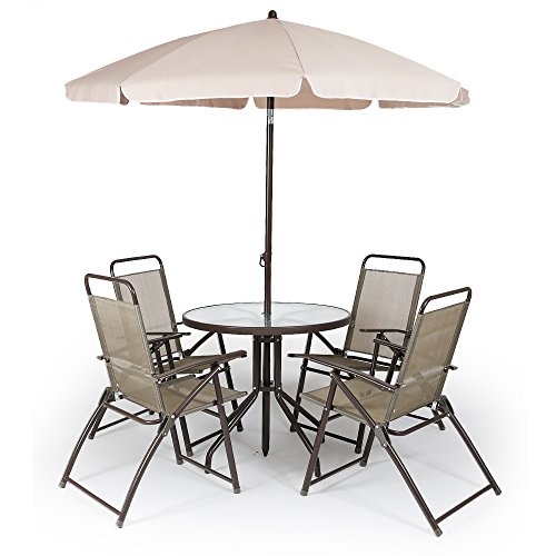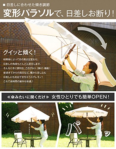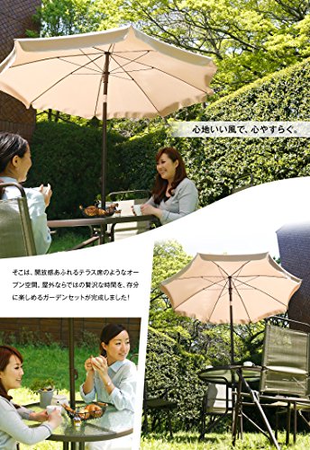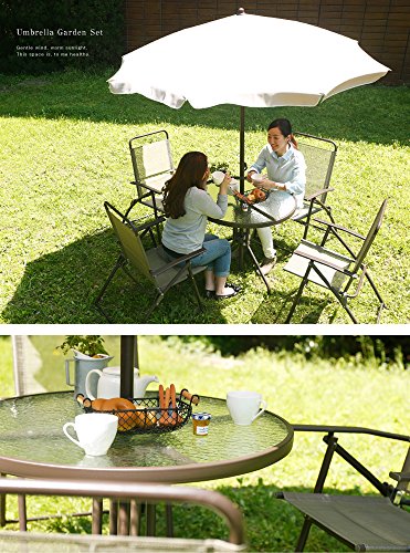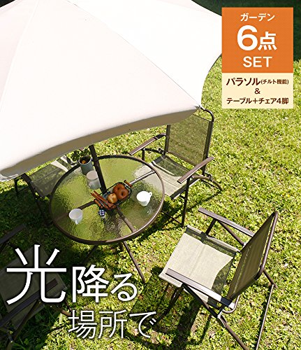 【商品番号:ff03-fj026-0010z0】 このセットひとつでお庭がカフェ空間に!チルトタイプのパラソル付きガーデン6点セットです。