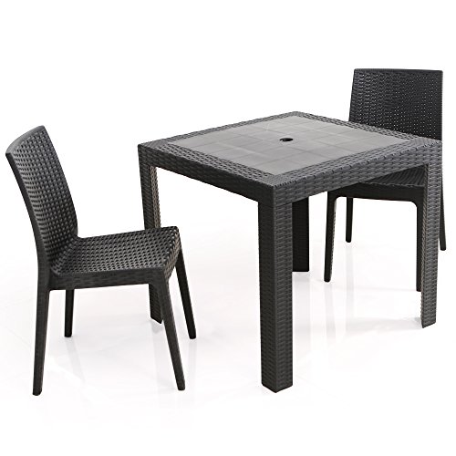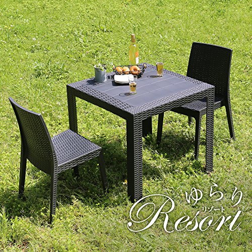LOWYA (ロウヤ) ラタン調 ガーデンテーブルセット 3点セット 2人掛け パラソル穴付 スタッキング チェア 肘無し ブラック