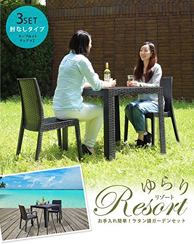 【商品番号:ff03-fj035-0010z0】 ラタン調のオシャレなチェアとテーブル。3点セット!