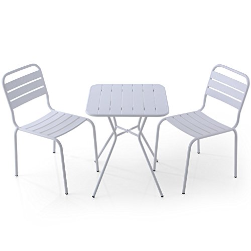 LOWYA (ロウヤ) ガーデンセット 3点セット 選べる4タイプ 雨に強い マットスチール スタッキングチェア コンパクト ガーデンテーブル Btype ホワイト