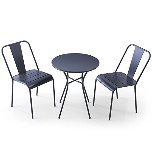 LOWYA (ロウヤ) ガーデンセット 3点セット 選べる4タイプ 雨に強い マットスチール スタッキングチェア コンパクト ガーデンテーブル Ctype ダークグレー