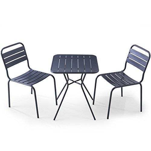 LOWYA (ロウヤ) ガーデンセット 3点セット 選べる4タイプ 雨に強い マットスチール スタッキングチェア コンパクト ガーデンテーブル Btype ダークグレー