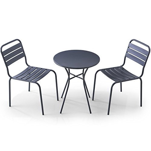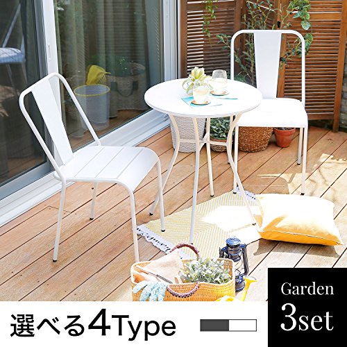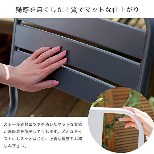 LOWYA (ロウヤ) ガーデンセット 3点セット 選べる4タイプ 雨に強い マットスチール スタッキングチェア コンパクト ガーデンテーブル Atype ダークグレー