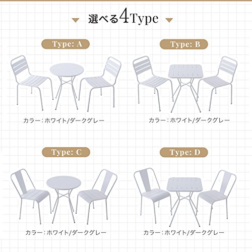 - 【サイズ】<テーブル(タイプA/C)>幅60x奥行60x高さ71cm <チェア(タイプA/C)>幅45x奥行57x高さ83cm 【素材】金属(スチール)