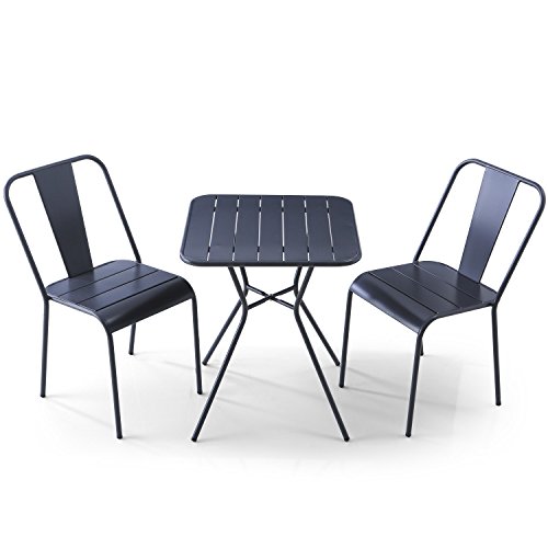 LOWYA (ロウヤ) ガーデンセット 3点セット 選べる4タイプ 雨に強い マットスチール スタッキングチェア コンパクト ガーデンテーブル Dtype ダークグレー