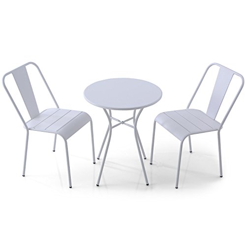 LOWYA (ロウヤ) ガーデンセット 3点セット 選べる4タイプ 雨に強い マットスチール スタッキングチェア コンパクト ガーデンテーブル Ctype ホワイト