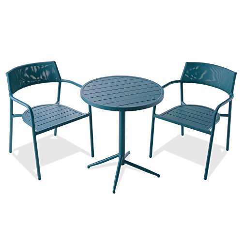 LOWYA (ロウヤ) ガーデンテーブル ガーデンチェア 3点セット スタッキングチェア キャンプチェア アジェスタ機能付 パウダーコーティング アルミ製 グリーン