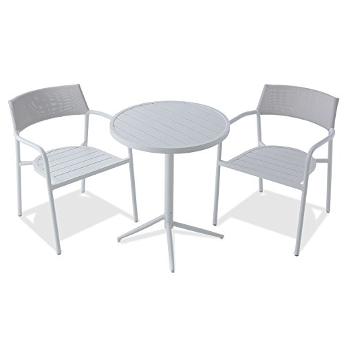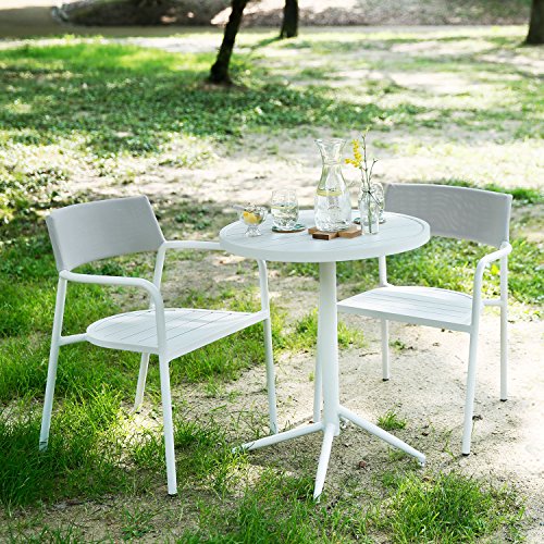 LOWYA (ロウヤ) ガーデンテーブル ガーデンチェア 3点セット スタッキングチェア キャンプチェア アジェスタ機能付 パウダーコーティング アルミ製 グレー
