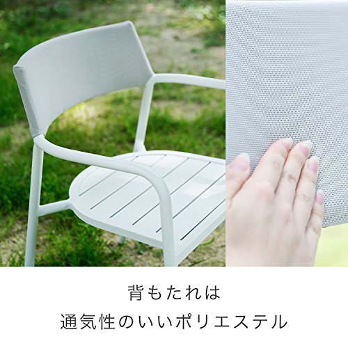 - 【素材】 表面材:アルミニウム 表面加工:ポリエステル塗装 チェア張り材:ポリエステル、ポリエチレン