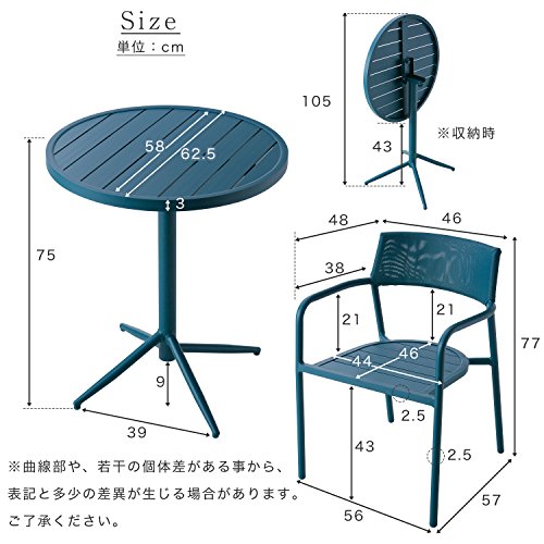 - 【サイズ】 テーブル:幅62.5x奥行62.5x高さ75cm チェア:幅56x奥行57x高さ77cm(座面高43cm)