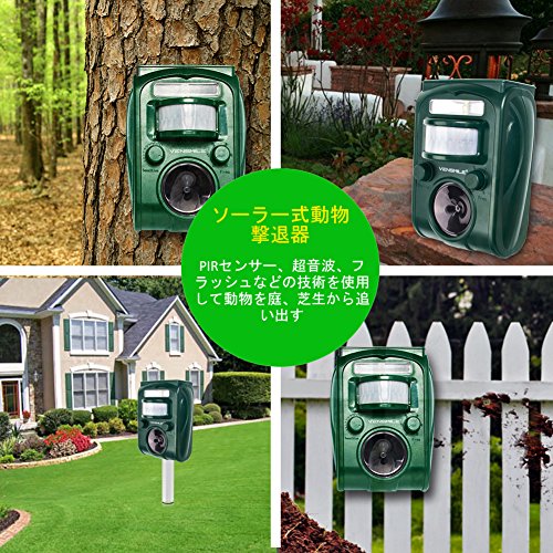 VENSMILE 猫よけ超音波 動物撃退器 害獣撃退 ソーラー式 フラッシュライト 防水 簡単設置