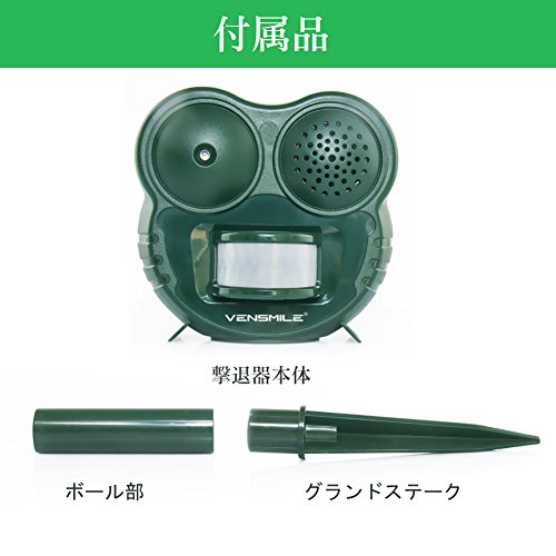 VENSMILE 動物撃退 猫よけ センサー 超音波 害獣対策 猫犬退治 害獣撃退 電池式 防滴 動物被害を軽減 簡単設置 猫、犬、ネズミ、キツネ、ハト、カラス、コウモリ、げっ歯類など対応
