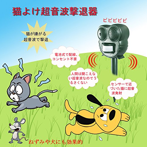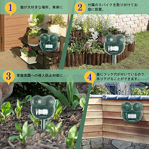- 1、高周波数の超音波と強いフラッシュによって動物(猫、犬、ネズミ、ハトなど)を庭、芝生、ゴミ箱から追い払う動物被害(フン害、食害、騒音、もはなど)を軽減!!