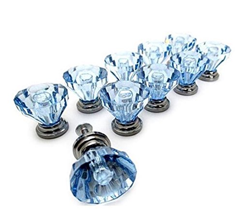 アンティーク調 取っ手 クリアクリスタル 10個セット (1.アクアブルー)