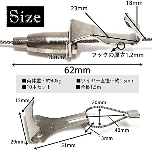 ピクチャーレール ワイヤー フック 自在金具 フック1個 10本セット (1m 10本セット)